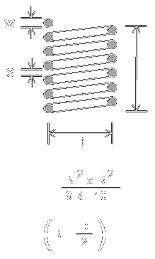 | The inductance (and self capacitance) of a helical coil can be determined by entering its dimensions in the boxes above. The length of wire used is also calculated.